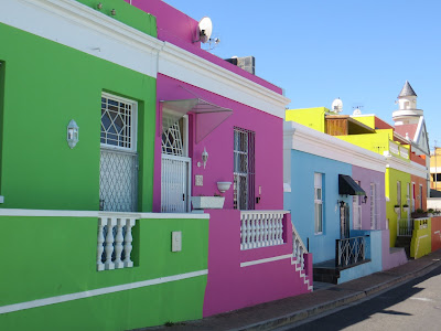 To cheer you up, since I know many of you have been mourning the loss of David Bowie, Alan Rickman and Glenn Frey, I thought I’d share some fun and colourful pictures of Cape Town’s Bo Kaap area. This is a Muslim neighbourhood of Cape Town where the residents celebrate their heritage and nationality by painting their houses in vivid and vibrant colours. In the intense and bright sunshine of the Western Cape, the colours appear more pure and searing. I hope you like them.