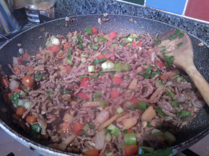 I probably need to explain this photo. I had intended to take pictures of each course as they arrived for the edification of my (small band of) readers. But I admit that I totally forgot this thought and took my first bite of the Pat Chun Tomato. Him Indoors suddenly realised what had happened and reminded me that I was supposed to take a picture. So, sadly, owing to my gluttony, here is a picture of Pat Chun Tomato minus a rather big mouthful. Teethmarks are fully visible!